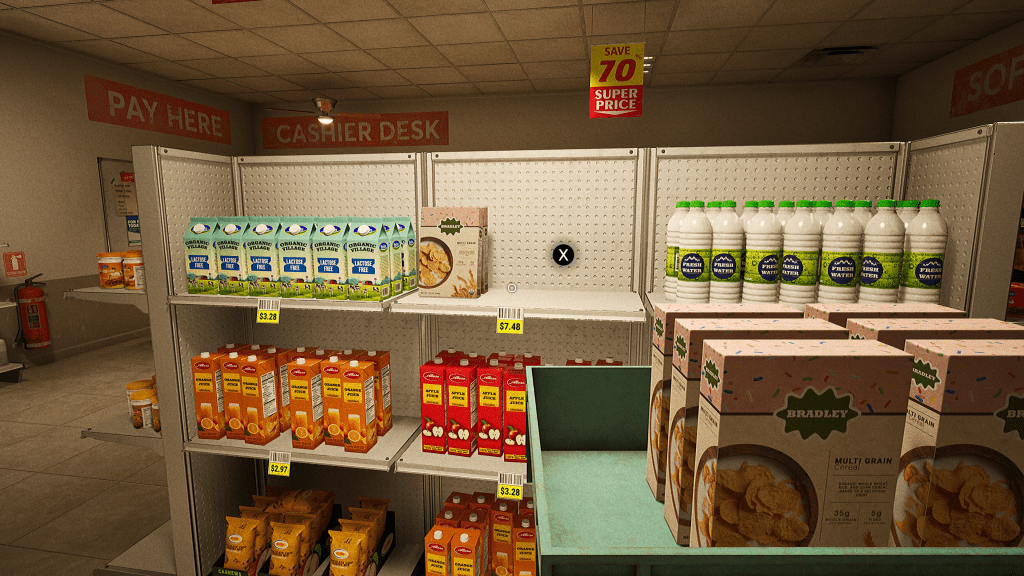 Après une journée tuto qui vous présente une liste (non exhaustive) des tâches que l’employé doit accomplir au sein de la petite boutique, le joueur est de suite plongé dans la première véritable journée de travail où la moindre erreur est synonyme de faute grave. Vous avez eu le malheur d’oublier un seul rouleau de papier toilette à remettre ? Une porte est restée ouverte ? Une caisse est tombée de l’étagère ? C’est la sanction immédiate à la sortie de la boutique ! En effet, une seule faute et le grand patron vous attendra à la sortie pour vous faire la morale. S’il doit intervenir à trois reprises c’est le Game Over et il vous faudra alors recommencer le jeu depuis le début. S’il ne vous faudra pas plus de 7 jours pour terminer l’histoire, ce second épisode propose 48 scénarios (plus du double de Supermarket donc), 4 fins et aussi 8 souvenirs à débloquer. Une bonne durée de vie d’au moins quelques heures, car pour tout faire, il vous faudra jouer plusieurs fois la campagne. Un bon point étant donné que nous avions reproché à Supermarket sa durée de vie assez minuscule.