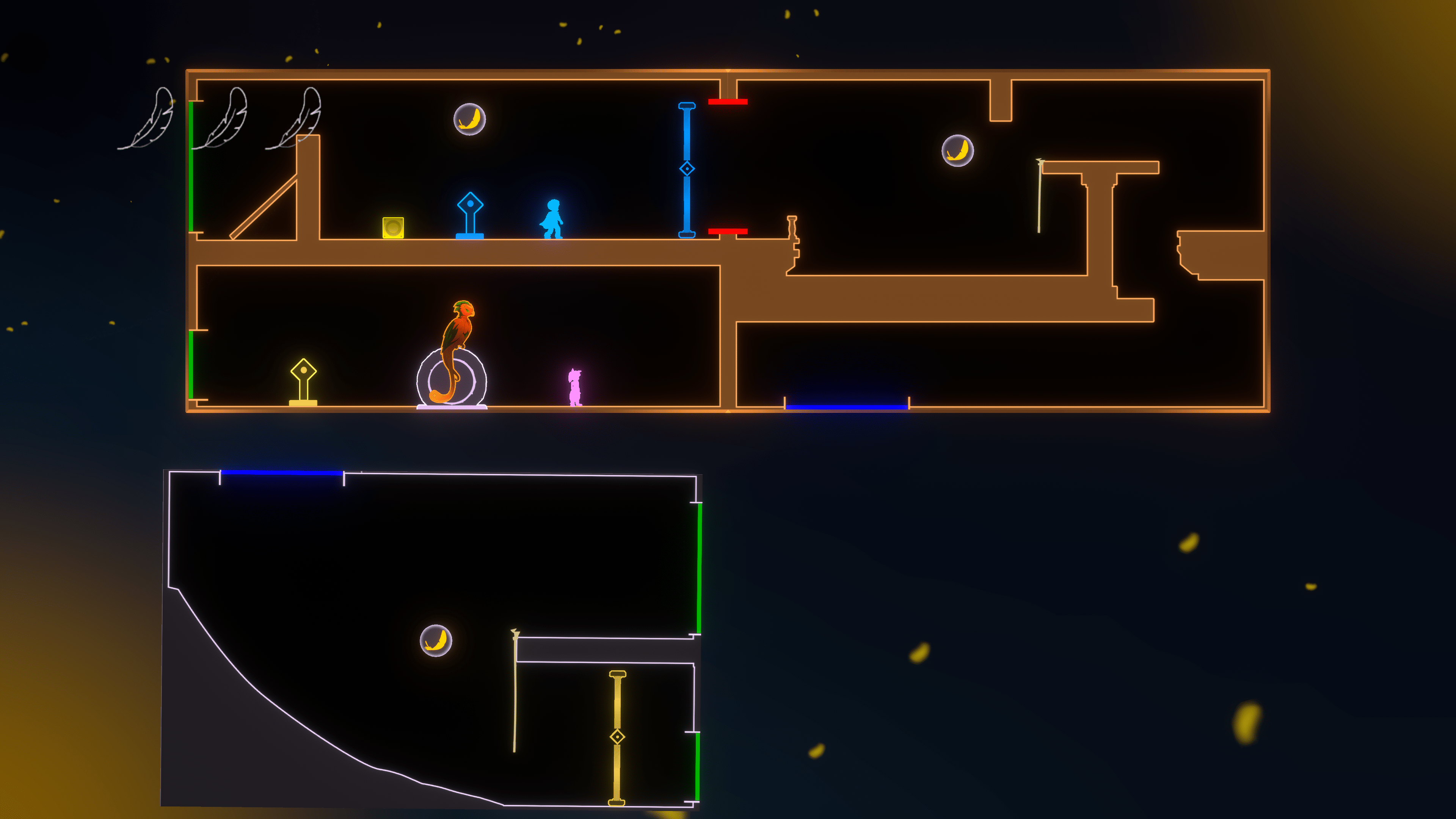 Si les puzzles sont intéressants et le gameplay plutôt bon, on note quelques problèmes de physique, notamment dans le déplacement d’objets comme les rochers à pousser qui sont parfois un peu capricieux et « coincent » dans le décor. Rien de très grave cependant. À cela s’ajoute de légers ralentissements et des temps de chargement parfois un peu longs pour un petit jeu de ce type. Mais encore une fois, on ne peut pas dire que cela gâche l’expérience générale. Il est en revanche dommage qu’un des joueurs doivent souvent attendre que l’autre agisse afin de pouvoir progresser, donnant ainsi l’impression que le jeu était pensé en solo à la base. Enfin, il n’y pas vraiment non plus de rappel concernant l’utilisation des touches, et aller dans les paramètres ne nous apprend pas grand-chose étant donné que les touches de la manette ont des symboles comme légende (un peu comme une langue inconnue). Si un adulte comprend aisément, un enfant pourrait avoir du mal à s’y retrouver.