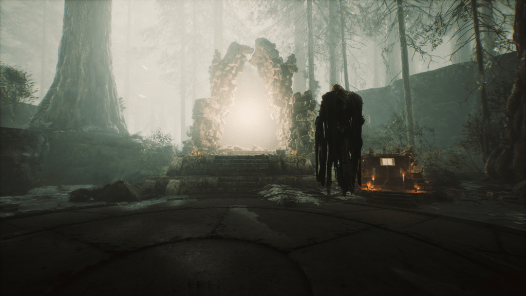 Le principe du jeu est on ne peut plus simple : passer d’une zone à l’autre pour éliminer des ennemis et récolter différents matériaux afin de pouvoir s’améliorer entre deux missions au refuge, le lieu où vous réapparaitrez en cas de décès. Lorsque vous complétez une zone (une salle pour faire simple) vous avez le choix entre plusieurs portails. Sur ces portails est indiqué la prochaine récompense que vous pouvez obtenir en terminant la zone suivante. Au joueur donc de choisir le portail en fonction de ce qui l’intéresse le plus. Et à force de passer des portails, vous tomberez parfois sur des boss qui vous donneront davantage de récompenses si vous parvenez à les vaincre. Premier problème que l’on constate au cours de nos essais, les décors sont très similaires du début à la fin. Même chose pour les ennemis, avec un bestiaire très peu varié. Les zones de combats sont en fait de petites salles dont on fait vite le tour et parfois totalement similaire d’un essai à l’autre, au tonneau près. Pour un jeu décrit comme un Roguelite, le côté procédural est donc assez léger, étant donné que les niveaux sont toujours identiques mais dans un ordre différent.