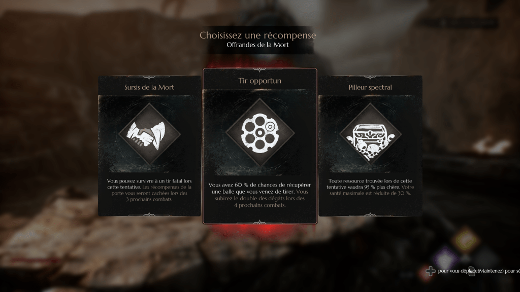 En bref, comme dans la plupart des jeux du genre, il faudra effectuer de nombreux essais afin de s’améliorer solidement, histoire d’avoir une chance de terminer le jeu. À noter que la Mort en personne fait parfois son apparition, vous offrant des pouvoirs en échange de malus, là encore uniquement pour l’essai en cours. Enfin, le cimetière, zone mystérieuse accessible parfois par un portail, vous permettra d’obtenir des ressources, armes et compétences de manière provisoire. Mais attention car cette zone est assez difficile. Oui, on n’a rien sans rien ! Enfin sachez qu’il vous faudra environ 8 à 10 heures pour terminer l’histoire principale, et environ une quinzaine d’heures pour tout débloquer et obtenir l’intégralité des succès.