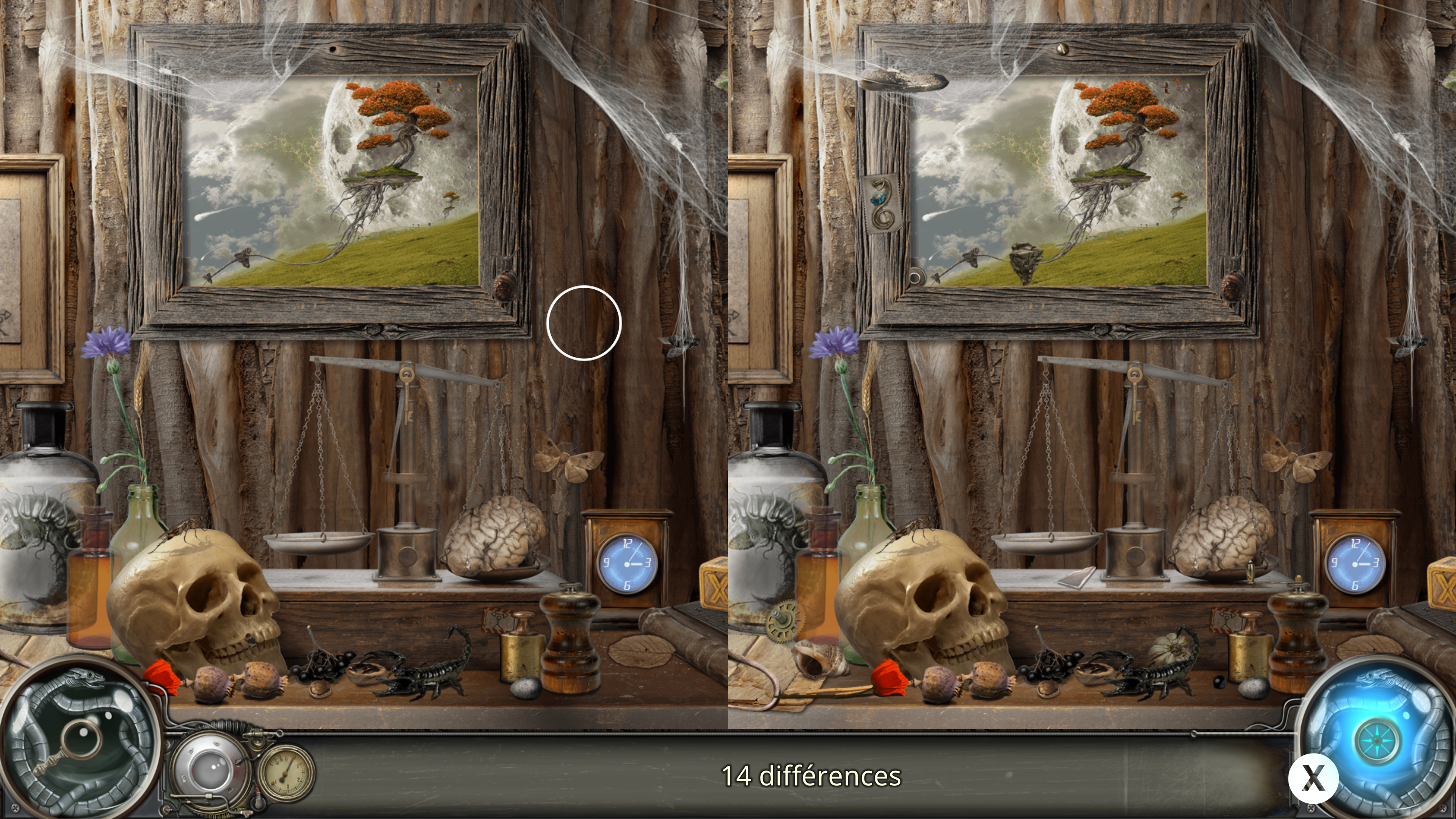 Au chapitre des différences par rapport à la version d’origine, on constate que les graphismes se sont améliorés, avec des couleurs plus jolies, rendant les images plus vivantes. Le studio a aussi fait le choix de supprimer les visages humains (notamment du narrateur), qui étaient il est vrai, assez génériques à l’époque. Question gameplay on trouve aussi quelques changements comme la suppression du score lorsqu’on collecte des objets, réservé cette fois au mode défi. En plus de l’aide révélant l’emplacement d’un objet (qui se recharge avec le temps) on peut aussi voir à quoi ressemble un des objets à trouver. Moins vous utilisez d’aides et plus vous serez récompensé en fin de niveau. Et n’espérez pas cliquer partout au hasard car au bout de quelques clics frénétiques, le jeu vous bloquera plusieurs secondes, avec l’apparition d’une bestiole assez moche sur votre écran ! On constate aussi une amélioration du zoom, moins saccadé que par le passé, avec des images plus nettes une fois le focus fait dessus. En bref quelques changements et améliorations sympathiques que l’on salue. Dommage cependant que la traduction ne soit pas parfaite, avec quelques phrases dont la tournure ne fait pas très française. Cependant on comprend tout de même aisément de quoi il retourne. Enfin question bande-son, attendez-vous à entendre la même musique du début à la fin du jeu ! Heureusement celle-ci est plutôt réussie et colle bien à l’ambiance générale. Mais c’est tout de même un peu redondant sur le long terme.