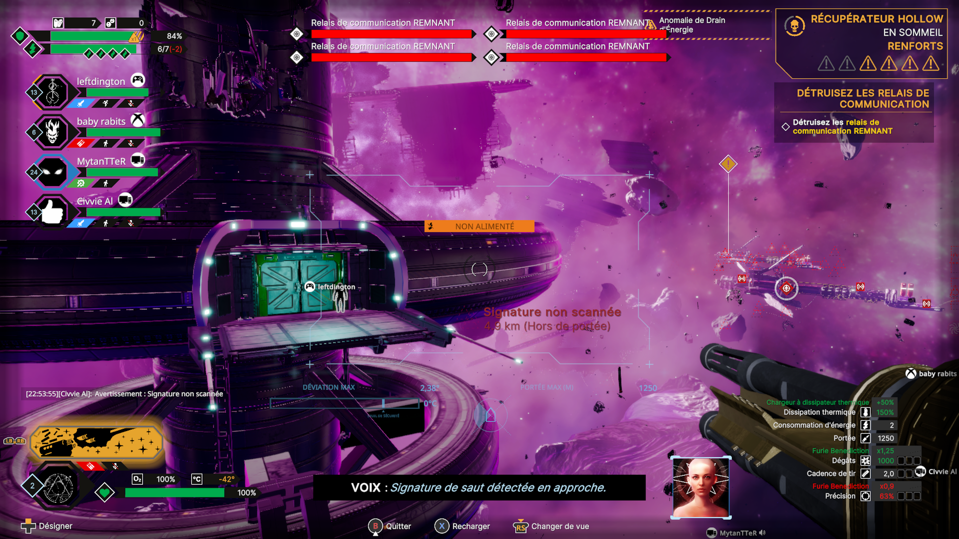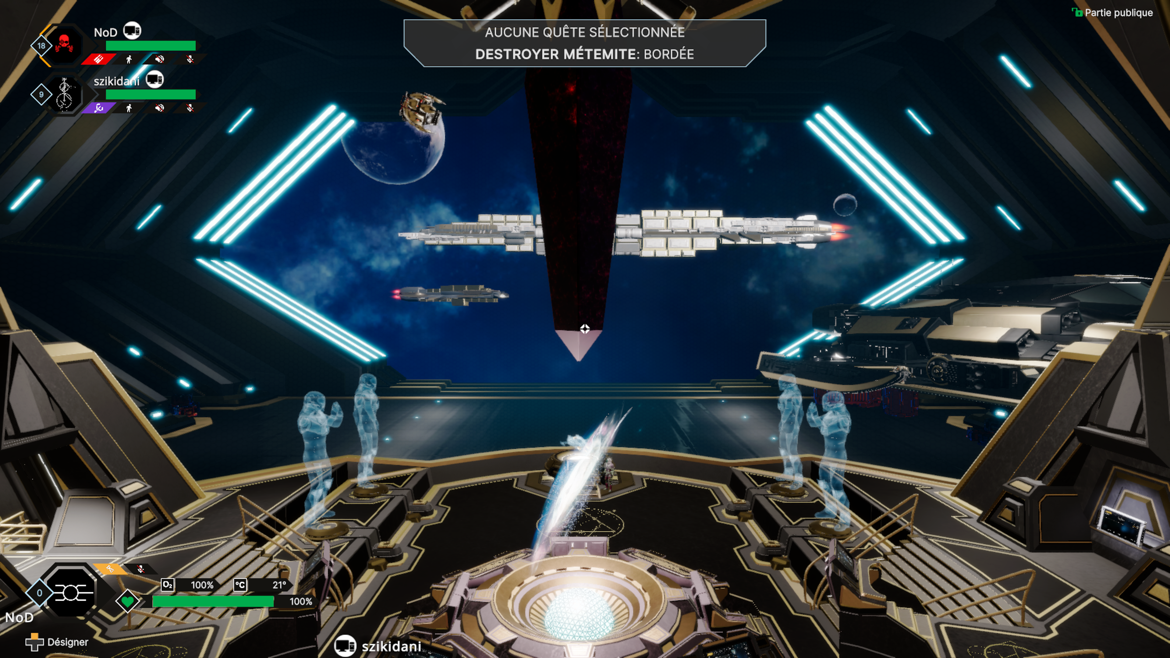 L’action se déroule dans le futur et comme d’habitude, l’humanité va mal ! En effet cette dernière est attaquée par une menace mystérieuse : Le Hollow. Si sa nature exacte reste inconnue, la menace elle, est bien réelle. L’humanité se serre donc les coudes et part braver cette envahisseur venue de l’espace en tentant de remettre de l’ordre un peu partout dans la galaxie. Pour cela, elle envoie des hommes et des femmes explorer le vide spatial à bard de vaisseaux ultra avancés technologiquement. Après un long tuto qui vient nous présenter les bases du jeu, nous voilà donc partis à l’aventure sans pour autant être bien préparé à tout ce qui nous attend ! Dès le départ, le jeu semble assez complexe à maitriser de prime abord, avec beaucoup de systèmes et de procédures à apprendre, avec un petit côté simulation. Impossible donc de sortir dans l’espace à l’arrache sans préparation ou encore de partir en hyperespace sans avoir respecté un protocole strict. Au début, on tâtonne donc beaucoup. Et les premières heures de jeu feront clairement office de didacticiel. Après quelques morts idiotes, on finit cependant par prendre le jeu en main, s’inspirant notamment des comportements d’autres joueurs que l’on peut rejoindre à tout moment et qui peuvent aussi débarquer dans nos parties ouvertes afin de former un équipage digne de ce nom. Car bon, on ne va pas se mentir, même si le jeu est parfaitement jouable en solo, il est avant tout pensé pour se jouer à plusieurs, tant il y a de choses à faire en même temps parfois.