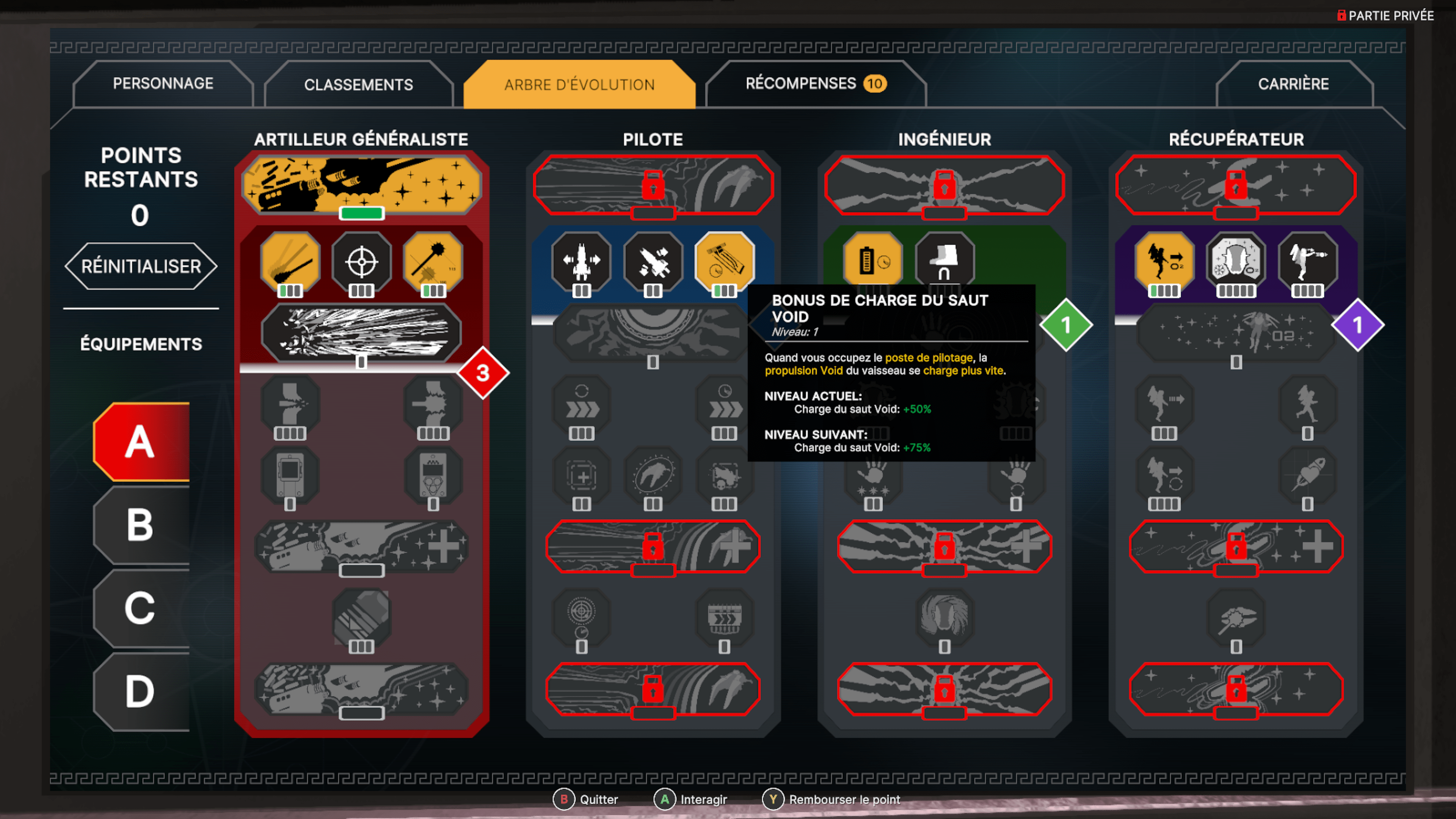 Quatre classes vous sont proposées afin de varier les rôles. Il y a le pilote, qui a pour rôle de manœuvrer le véhicule et analyser l’environnement. Il y a ensuite l’artilleur, qui comme son nom l’indique va devoir défendre le vaisseau. On trouve également un poste d’ingénieur, dont ses tâches consistent à effectuer les différentes réparations, manipulations et fabrications. Enfin vient le pilleur qui peut aller explorer les épaves et autres stations dans l’immensité spatiale. Vous pourrez améliorer ces classes via un arbre de compétences en leur attribuant différents points. Hélas l’arbre de compétence manque un peu de flexibilité et surtout de possibilités de l’enrichir. À vous également de placer les équipements offensifs et défensifs de votre engin comme bon vous semble, vous permettant ainsi de customiser et de piloter chaque vaisseau de manière différente.